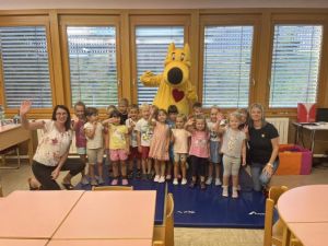 V sredo, 4. septembra 2024, nas je obiskal Kuža Pazi. Otrokom je na prijeten način povedal, kako se morajo varno obnašati v prometu. Skupaj z njim smo zapeli še pesem Kuža pazi ter se z učenci šole odpravili na krajši sprehod, kjer smo pravila prečkanja ceste in hojo po pločniku prikazali tudi v živo. Več fotografij.
