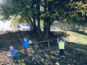 Na dan, 23. september, 1. jesenski dan, smo skupaj z otroki na igrišču pred vrtcem opazili drevesa in grmovja katerih listi so bili že barviti, svetlikajoči in jesensko obarvani, saj je jesen najbolj pisan čas v letu. Z odkrivanjem in spoznavanjem jeseni smo nadaljevali v mesecu oktobru in podrobneje spoznavali jesen na polju, v sadovnjaku in v gozdu. Pri spoznavanju polja smo spoznali zgodbo, Pozabljena buča. Otroke je zgodba zelo pritegnila...