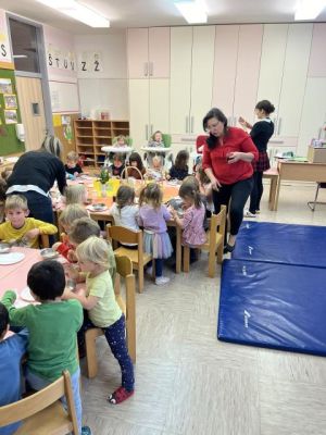 V okviru tedna slovenske hrane nas je v četrtek, 14. 11. 2024, obiskala kmečka žena gospa Suzana Planinšič. Predstavila nam je domačo hrano, in sicer kruh, maslo, med, jogurt, marmelado in domače mleko. Vse te dobrote smo lahko poizkušali. Več fotografij...