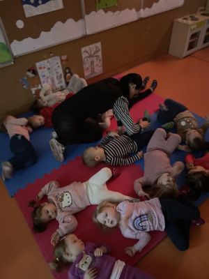 Ker je rdeča nit NAŠE TELO, ga v novem letu doživljamo malo drugače. Otroci se ob nežni melodiji ali pa žuborenju potoka, uležejo na tla in se prepustijo masaži z masažno žogo. Večina otrok samih od sebe zapre oči in se popolnoma umiri. Več fotografij...